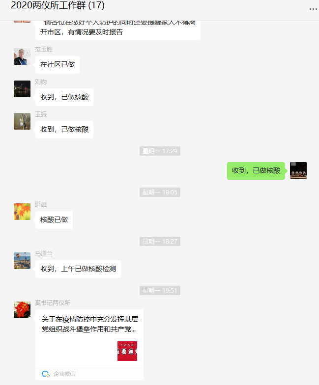 近期疫情防控形势严峻复杂,两仪所党总支积极响应政府和学校相关防疫要求,努力作好各项基层防疫工作。